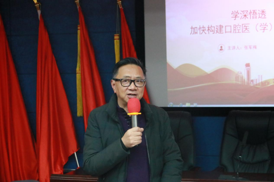 127日,公司在行政楼五楼学术报告厅组织召开学习贯彻党的二十大精神宣讲报告会公司党委书记张军梅以“学深悟透 真抓实干 加快构建口腔医(学)院高质量发展新格局”为题作专题宣讲,党委书记经理马洪主持会议,公司党政领导班子成员及党委委员出席会议全院副科级以上干部含教研室主任)、各党支部书记、全体辅导员及教职医护员工代表列席会议