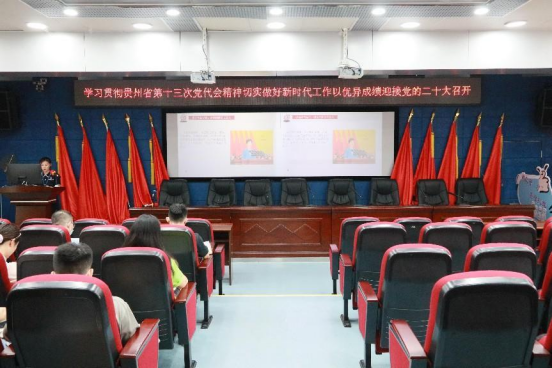 7月28日,党委副书记何雨羲在行政楼五楼学术报告厅围绕学习宣传贯彻中国共产党贵州省第十三次代表大会讲专题党课,分管部门、所在支部和联系支部员工管理科、工会、两院团委、教工第一党支部、教工第二党支部参会学习。