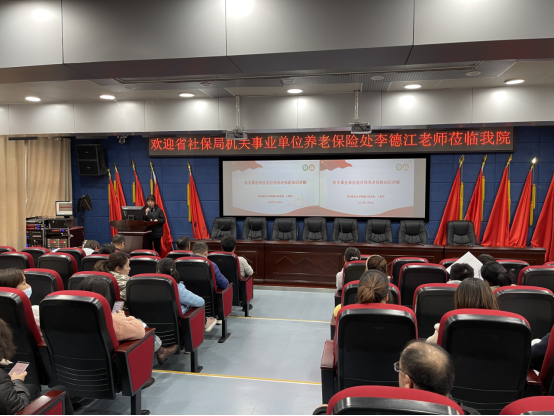 12月8日,公司在行政楼五楼学术报告厅开展“我为群众办实事,政策普及‘零距离’”主题活动,邀请贵州省社会保险事业局机关事业单位养老保险处一级主任科员李德江、3044永利集团人事处张常喜讲解养老保险缴纳及退休金核定相关政策。公司党委副书记、经理马洪,党委副书记何雨羲出席会议,全院编制人员参会学习。人事科副科长齐琦主持会议。