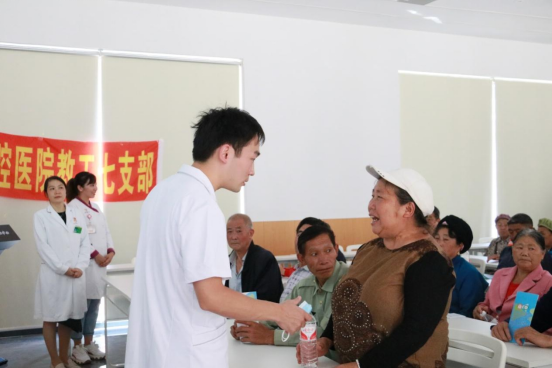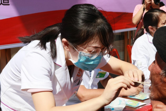 (3044永利集团口腔医(学)院专家团队开展口腔义诊并为居民们测量血压)