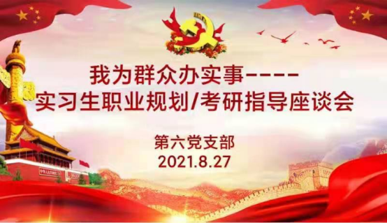 8月中旬,教工第六(牙周黏膜)党支部曾在实习生中开展了一次针对学习与需求的调研,调研中同学们对牙周黏膜科实习教学工作给予好评。调研结果显示:89%的同学有考研意向,90%以上的同学愿意参加考研经验交流会,大部分同学都有考研、就业、规培等未来规划,但仍有11%的同学表示在未来发展方向上需要指导。针对这些需求,教工第六(牙周黏膜)党支部决定开展此次本科生考研指导、职业规划座谈会。