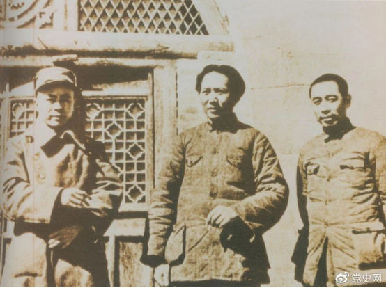 洛川会议上组成了新的中共中央革命军事委员会,毛泽东为书记(亦称主席)。这是毛泽东、周恩来和任弼时的合影。