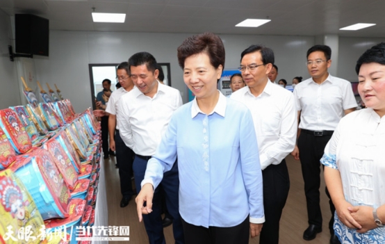 谌贻琴在镇宁自治县银城趣事易地扶贫搬迁点民族文化街区考察扶贫车间