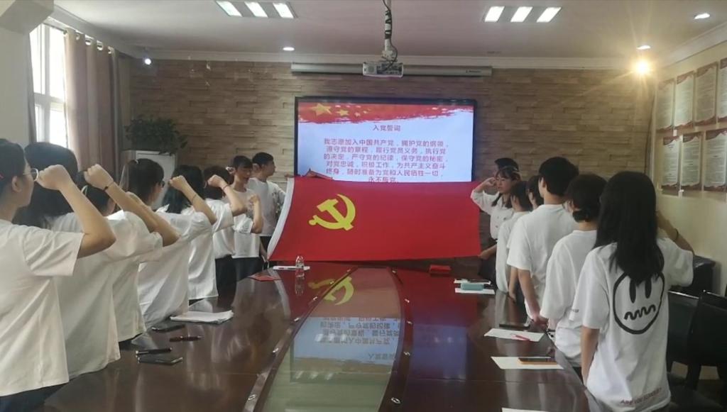 上午8:30,支部党员同志们首先在行政楼五楼会议室观看《庆祝中国共产党成立100周年大会》视频,深入学习习近平总书记在大会上的重要讲话,在视频结束之际,全体同志心潮澎湃,热血沸腾,高唱起《国际歌》,庄严的歌声,坚定的誓词,是党员们发自肺腑的信仰。之后何雨羲为今年新发展入党的同志赠送了“政治生日”贺卡,强调党员过“政治生日”是强化党员政治身份认同感的重要方式,加入党组织,拥有人生的第二个生日也代表着比别人多一份责任与担当。何雨羲鼓励党员们要牢记共产党员的初心使命,坚定理想信念,做新时代硬核党员。最后,参加活动的党员在何雨羲的带领下重温入党誓词,面向鲜红党旗,举起右手,庄严宣誓,声音铿锵有力,宣示着支部党员听党话、感党恩、跟党走的信心和决心。