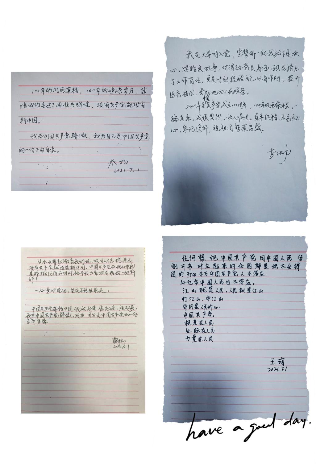在建党百年之际为深入推进党史学习教育,展现党员风采,教工六(牙周黏膜)支部于7月2日在牙周黏膜科办公室组织开展“献礼建党百年,对党写句心里话”主题党日活动。
