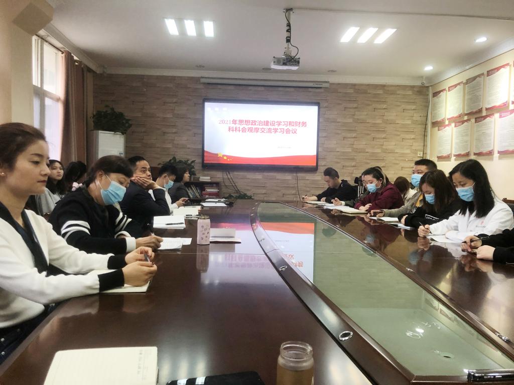 5月24日,公司在行政楼五楼会议室组织召开了2021年思想政治建设学习暨财务科会观摩交流学习会。会议将党史学习教育与财务科思想政治建设及各项工作任务紧密结合,强化一岗双责,促进担当作为,引领参会人员学党史、悟思想、办实事。院党委书记张军梅莅临指导,各医技科室、行政职能部门工作人员列席会议,财务科副科长、教工一(行政)支部组织委员张黎蓉和副科长王昊宇带领科室工作人员参加会议。财务科负责人刘倩主持会议。