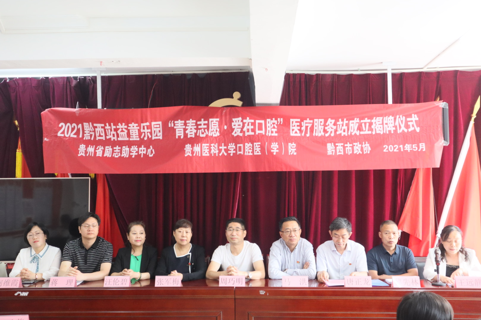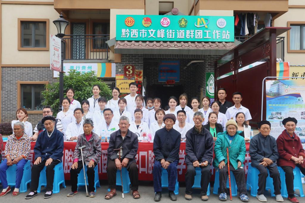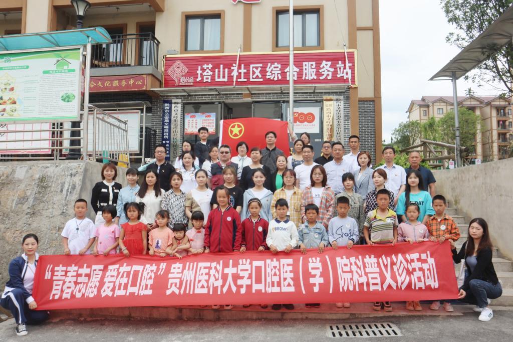 5月16日,由3044永利集团口腔医公司、附属口腔医院(后文简称口腔医(学)院)与贵州省励志助学中心共建的首个【青春志愿·爱在口腔医疗服务站】落地毕节市黔西站益童乐园并举行揭牌仪式。出席仪式的有:口腔医(学)公司党委书记张军梅、经理马洪、副经理唐正龙、党委副书记何雨羲;贵州省励志助学中心秘书长、民盟省直关爱教育支部主委周巧明、秘书长助理、团委书记杨治毅;黔西市政协副主席汪伦碧、黔西市智力支边办主任王远静、黔西市文峰街道党工委书记蒋理、黔西市卫健局副局长何维霞、黔西市民政局副局长黎先林、黔西市文峰街道办事处人大工委主任卢春;上海交通大学医公司附属第九人民医院口腔颅颌面科副主任医师乌丹旦。口腔医(学)院口腔颌面外科医生吴睿、预防及儿童口腔科医生魏宏琳、口腔修复种植科医生刘春影、团委工作人员及塔山社区部分老人和儿童代表60余人参加此次揭牌成立仪式。