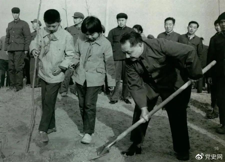 1979年3月12日,邓小平到北京大兴县庞各庄参加植树活动。