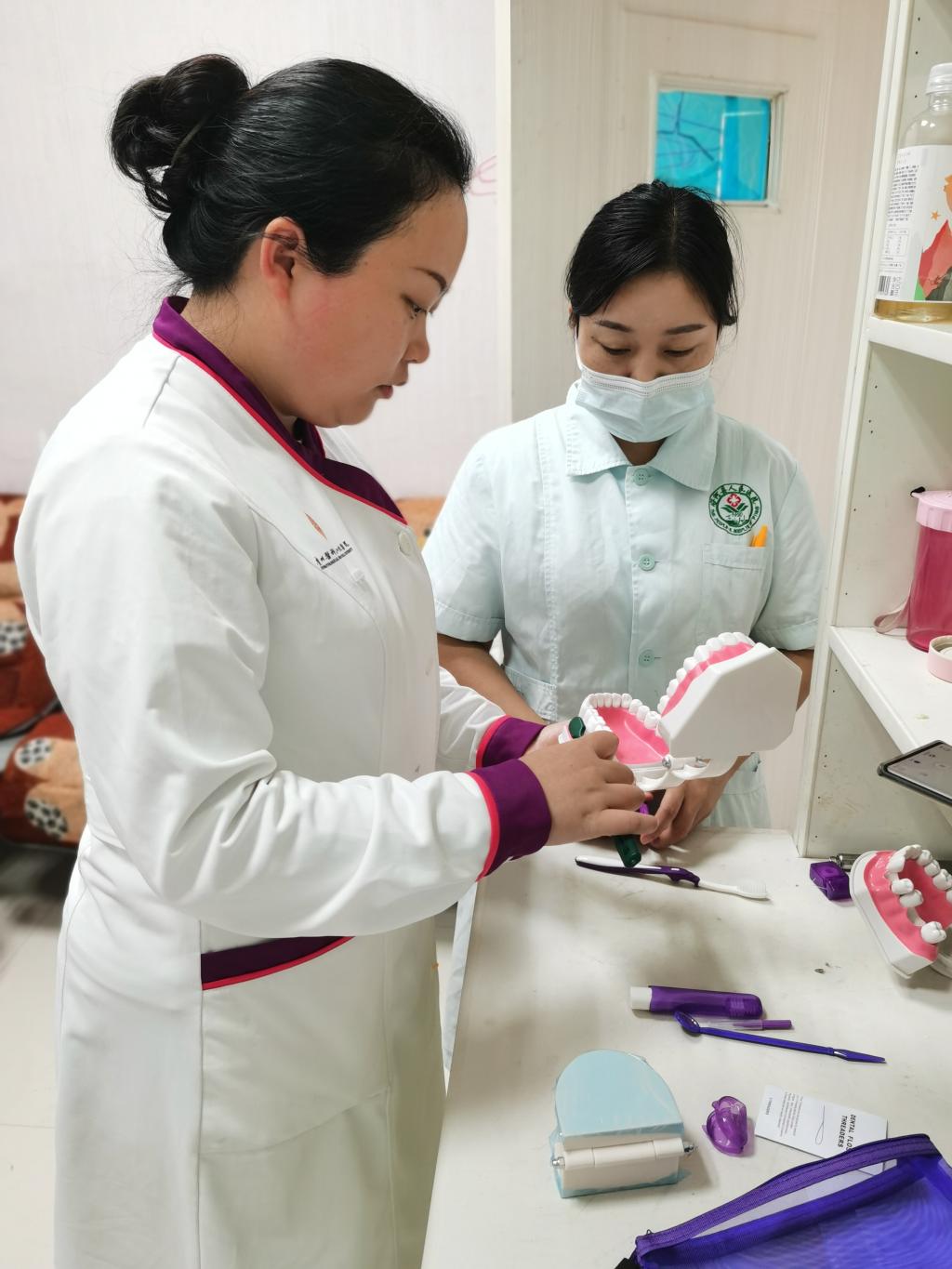 帮扶期间,杨晓春在口腔科及消毒供应中心工作,对“口腔科器械预处理、器械柜设计、消毒供应室库房物资管理、相关文件书写”等方面给予相应整改建议,进一步规范科室管理工作,协助科室顺利通过铜仁市卫生健康委专家组检查。为使口腔科护士更加系统的学习口腔专科技能及相关知识,还赠送口腔护理专业书籍2本、刷牙模型2副,并邀请沿河县土家族人民医院消毒供应中心护士到医院消毒供应中心参观交流学习1次。