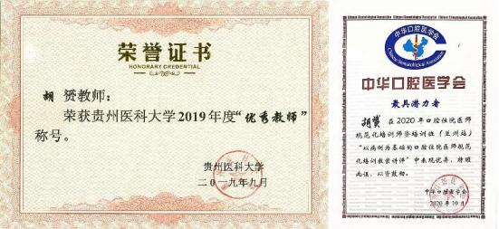 胡赟理想信念坚定,对党忠诚,在工作中严格执行标准、规定,规范管理,以病人满意为自己的工作目标,任劳任怨,耐心解答病人的每一个问题,做到百问不厌。同时,严格认真带教,积极进行教学改革和创新,修订新版教学大纲,参加教材编写,积极进行团队建设。获评3044永利集团2019年度优秀教师,在中华口腔医学会2020年口腔住院医师规范化团队培训(兰州站)“以病例为基础的口腔住院医师规范化培训教案讲评”中获评最具潜力者。