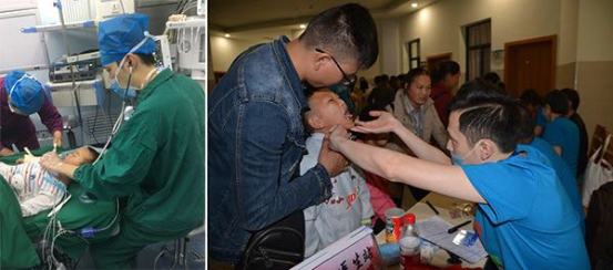 2019年6月、10月,梁晋超受中国人口福利基金会邀请,先后参加了云南昭通、新疆克州“幸福微笑集中救治活动”,同全国各地专家一起作为医疗志愿者无偿为唇腭裂患儿做修复手术。当地医疗条件较差,麻醉药品及设备不足,梁晋超所在的麻醉团队克服种种困难认真细致地做好围术期工作,共完成超过百名患儿的麻醉手术,保证每位得到救治的患儿都安全平稳度过围术期,顺利完成预期任务。期间,志愿者团队不辞辛苦,不求回报为唇腭裂患儿们提供救治服务,看见“小天使们”又能开心的微笑,志愿者们觉得所有的付出都是值得的。