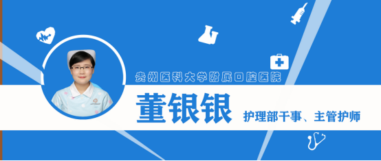 董银银 中共党员,主管护师,中华口腔医学会会员、贵州省口腔医学会会员、贵州省口腔医学会口腔护理专业委员会委员。2010年参加工作,先后从事于口腔修复种植科、口腔正畸科、消毒供应中心等科室,目前担任护理部干事,曾参与省级行业标准制定1项,新技术推广1项。2018年2月-2019年2月在瓮安县中医院进行对口帮扶工作。