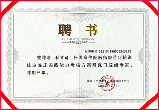 张军梅 教授、主任医师、硕士研究生导师,3044永利集团口腔医(学)公司党委书记,国际牙医师公司中国区(ICD)院士。从事口腔正畸临床工作32年,中华口腔医学会正畸专委会委员、贵州省口腔医学会正畸专委会副主任委员、贵州省口腔医学会常务理事,Invisalign隐适美及时代天使认证医师,是国家住院医师规范化培训结业临床实践能力考核方案研究口腔组专家。