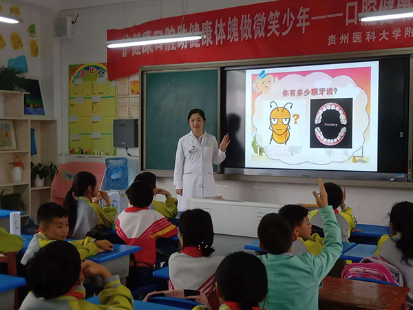 为提高大众对偏远山区贫困地区儿童口腔健康关注及重视,把爱和健康带给每一个孩子,近日,魏宏琳医生及所在预防及儿童口腔科开展了题为“护健康口腔,助健康体魄,做微笑少年”的口腔健康教育系列公益活动。他们在卢虹主任的带领下走进贵阳市师范公司附属实验小学四年级三班和安顺市平坝区大硐村大硐小学进行科普宣讲和义诊,为孩子们养成良好口腔卫生做出自己的贡献!