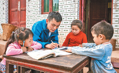 白天上课,晚上家访。支教的日子里,杨明常常在晚上批改完作业后,再打着手电筒到员工家去家访,村里许多羊肠小道上都留下了杨明的足迹。