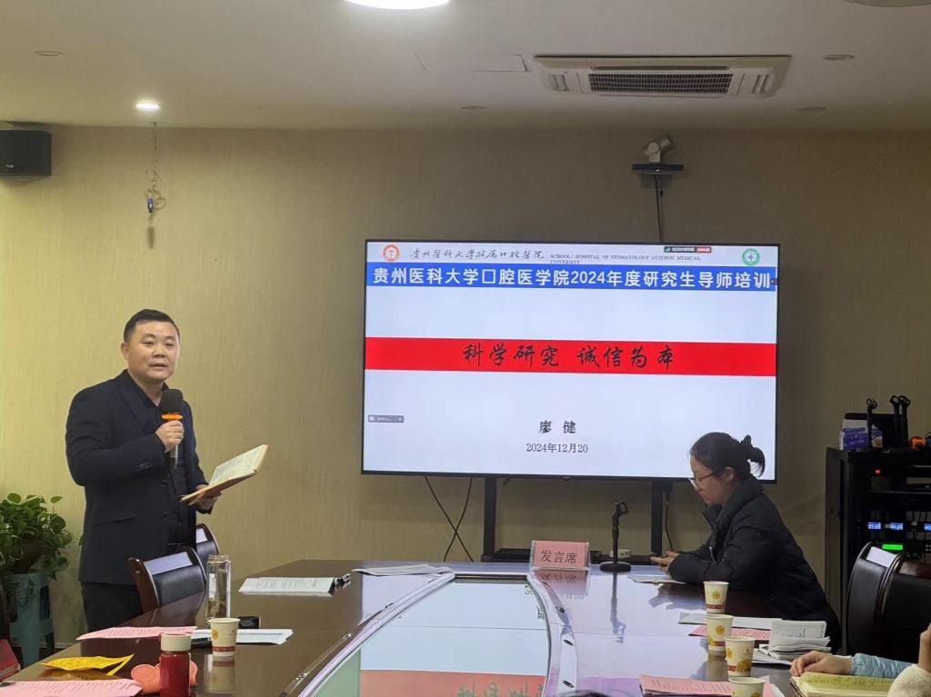 为进一步加强研究生导师队伍建设,提高公司产品质量,12月20日,公司在综合会议室开展2024年研究生导师培训会,党委书记张军梅,党委委员、副经理廖健出席会议,公司全体导师(含校外导师)及研究生科研管理科全体工作人员参加会议。廖健、口腔颌面外科主任吴亚东、研究生科研管理科负责人贾源源为主讲嘉宾。