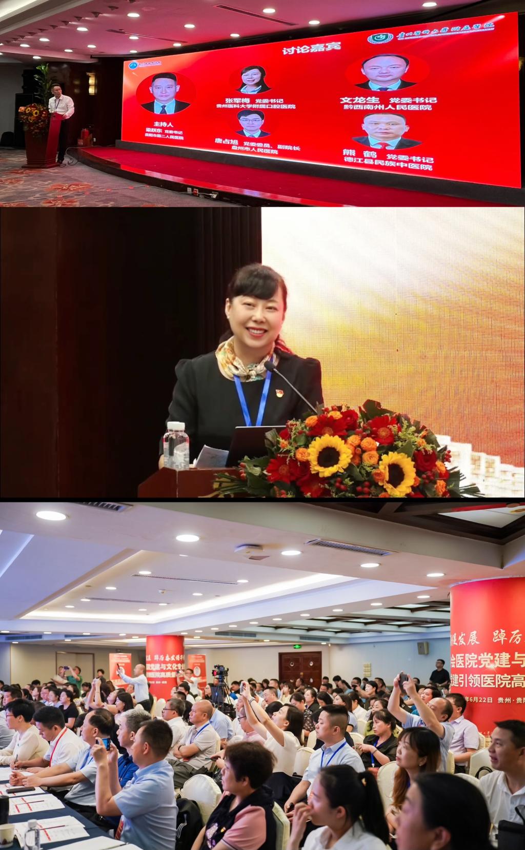 6月22日,贵州省医院协会医公司党建与文化工作委员会2024年年会暨党建引领医院高质量发展学术论坛在贵州饭店国际会议中心举行。此次会议汇聚了全国多家公立医院管理人员及相关医疗领域专家,共同探讨和交流如何通过党建引领推动医院实现高质量发展。