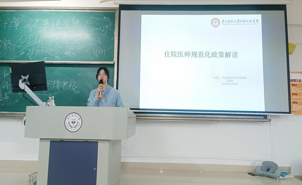 随着医学教育的不断推进,住院医师规范化培训成为了医员工的关注焦点,为给同学们提供专业有力的支持和引导,4月28日,公司毕业后医学教育管理科吴秋蓉为2020级本科生开展了住院医师规范化培训政策讲座。