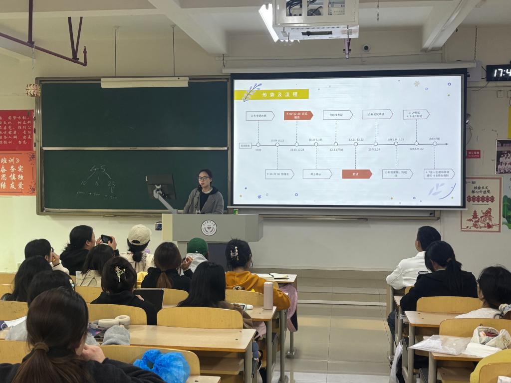 4月,2025年拟录取研究生陈凤凤、陈友为同学们分享考研经验。两位同学围绕考研流程、信息获取策略、备考建议、实力提升、心态调适与运气认知等方面逐一讲解,为同学们提供了一份全面而细致的考研攻略。他们还分享了英语、政治、专业课的高效学习方法,希望能够帮助同学们提高学习效率,在有限时间内取得更好的学习效果。随后,同学们就备考困惑积极提问,学长学姐细致解答,现场氛围热烈。