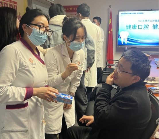 为发挥党员先锋模范作用,进一步普及口腔健康知识,提高居民的口腔健康水平,在3月20日世界口腔健康日之际,公司教工第六(牙周黏膜科)党支部联合贵州省建筑设计研究院一分院开展“口腔健康,全身健康”主题党日活动。