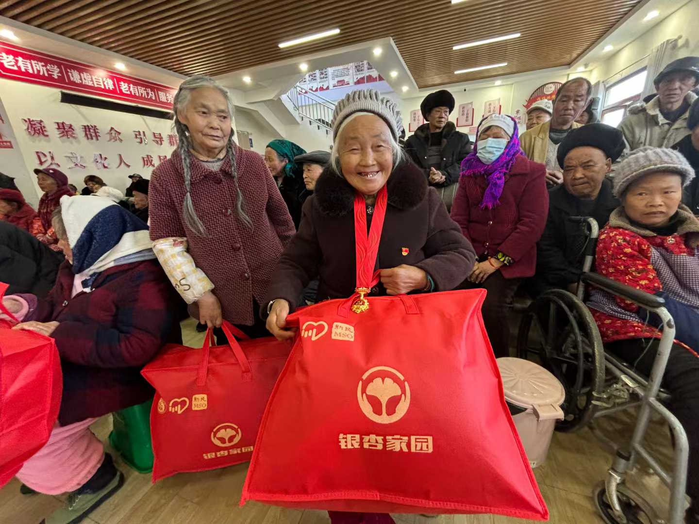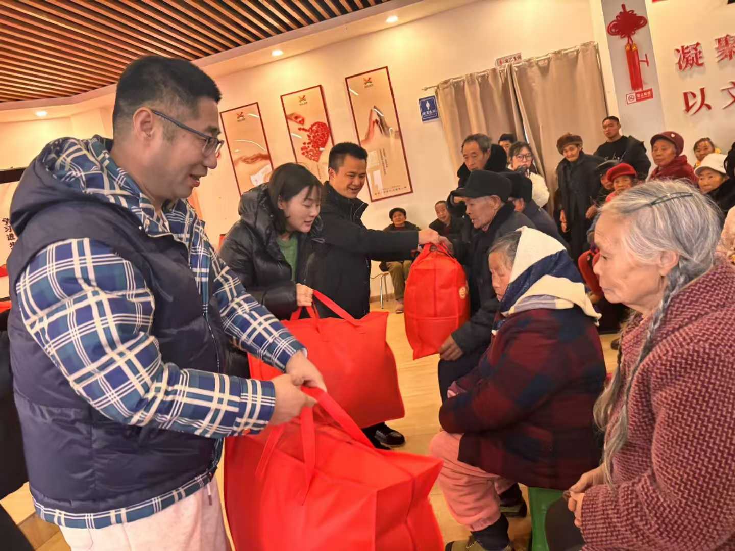 捐赠仪式上,志愿团队将价值3万元的御寒物资作为新春特别礼物捐赠给200名高龄老人。
