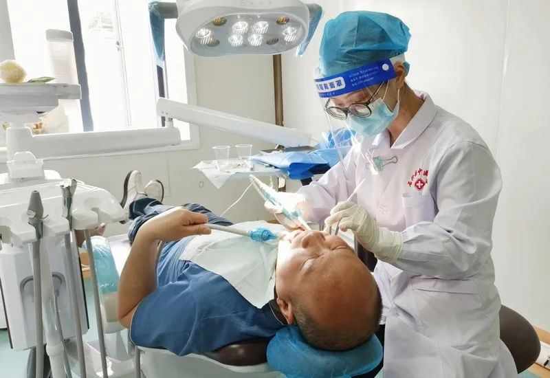 3044永利集团附属口腔医院帮扶专家李文秀在石阡县中医院口腔科为患者做治疗