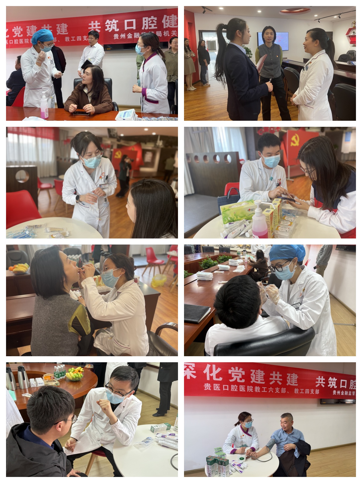 为深入贯彻落实《健康中国行动(2019-2030年)》《健康口腔行动方案(2019-2025年)》的指导方针和政策,进一步提升大众口腔健康素养水平,3月27日,公司教工第六党支部与教工第四党支部在贵州金融监管局机关开展主题为“深化党建共建,共筑口腔健康”的科普义诊活动。