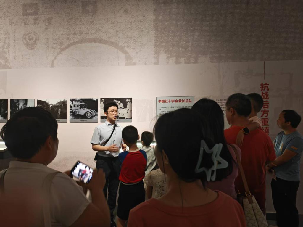 活动伊始,贵州省博物馆社教部老师田潇带领大家参观“华夏同御侮 黔山续文脉”特展。该展依托馆藏资源,聚焦中国共产党领导的抗日民族统一战线,系统展现了贵州在抗战时期作为大后方的重要贡献。国立贵阳医公司(今3044永利集团)作为当时全国九所国立医公司校之一,在艰苦卓绝的环境中坚持办学、救治军民,被誉为“草棚大学”,成为贵州作为“抗战医疗脊梁”的重要历史见证。