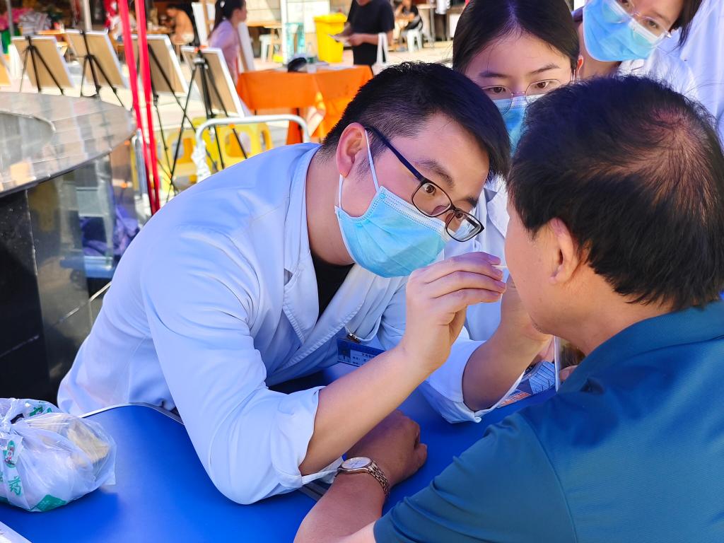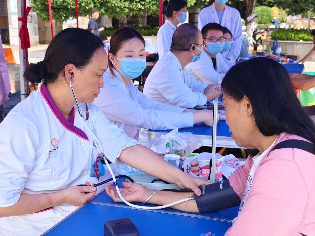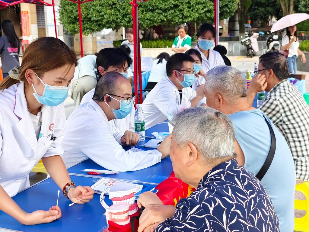 活动现场,医生团队为社区居民提供免费的口腔检查服务,包括牙齿清洁度评估、龋齿检查、牙周状况检查等,耐心解答居民关于口腔疾病的各类疑问。针对居民不同的口腔问题,给出了个性化的口腔治疗建议。同时,医护人员用通俗易懂的语言向居民介绍了常见的口腔疾病、预防方法及正确的口腔护理知识,并在现场示范了正确的刷牙方法和牙线使用技巧,邀请居民亲自体验,及时纠正他们的错误动作。此外,还为居民免费测量血压,发放口腔健康宣传资料。