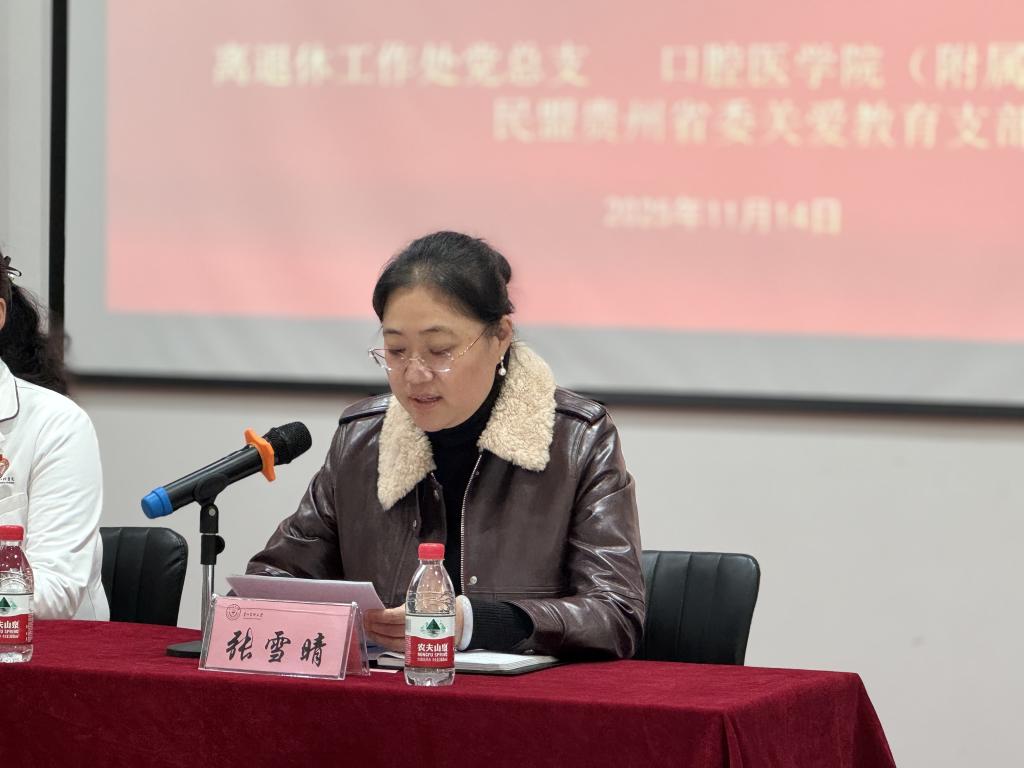 为深入贯彻落实健康中国战略,强化党建引领作用,深化多领域协同合作,切实提升群众口腔健康素养,11月14日,公司联合公司离退休工作处党总支、民盟贵州省委关爱教育支部开展“党建引领聚合力,口腔健康护安康”为主题的口腔健康讲座暨义诊服务活动。公司离退休工作处党总支书记、处长张雪晴,公司党委书记张军梅、党委副书记何雨羲,民盟贵州省委关爱教育支部主委、省励志公益发展中心秘书长周巧明及贵州省励志公益发展中心秘书长助理、宣传筹资部主任周雪琴出席,公司相关职能部门、各科室组成的医疗团队,公司离退休工作处退休老同志、工作人员参加活动。活动由张雪晴主持。