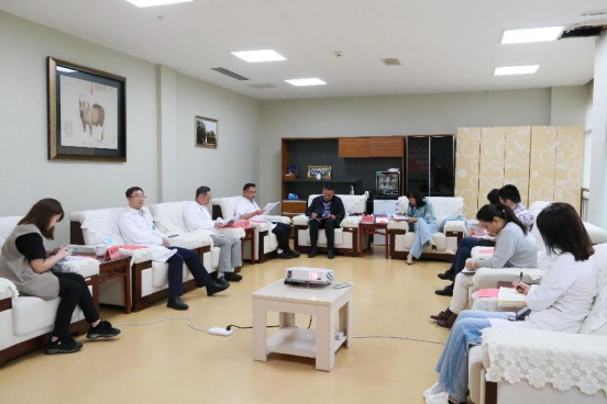 6月16日,贵州省事业单位登记管理局局长周奠苏、副局长张丽娟一行莅临公司作2021年度报告公示信息抽查工作。座谈会在医院9楼会议室召开,公司人事处副处长朱俊伟及公司党委书记张军梅、经理马洪、副经理唐正龙及部分行政职能部门负责人参加会议。副经理王永主持会议。