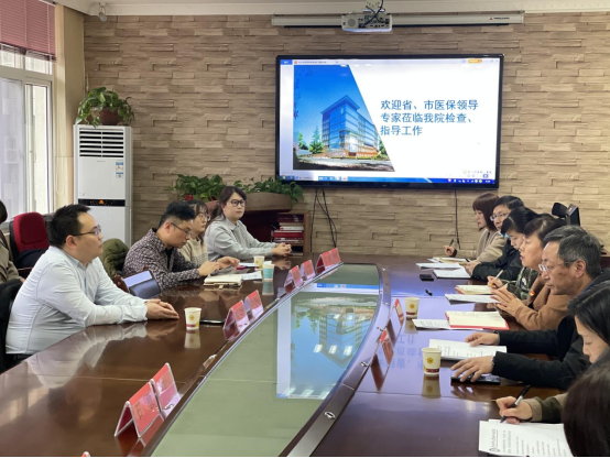 12月20日上午,由贵州省医疗保障事务中心副主任刘宇、贵阳市医疗保险费用结算中心审核二部主任莫昌松、贵阳市新型农村合作医疗管理中心石敏率领的省、市医保专家组一行21人到公司开展2021年定点医疗机构年度考核、下沉业务、“回头看”专项稽核检查工作。检查通过召开座谈会、查阅资料、现场核查等方式进行。座谈会在行政楼5楼会议室召开,公司党委书记张军梅出席会议并讲话,各行政职能部门负责人及医保价格科全体人员参加会议,副经理王永主持会议。