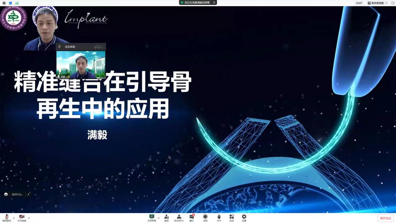 静默状态下,公司医护技人员齐心协力,共同战“疫”。战“疫”不停学,9月25日下午,口腔修复种植科通过线上视频会议的形式组织开展了团队建设系列云端交流研讨会。此次会议特邀请“援黔专家”四川大学华西口腔医院种植科主任满毅教授作讲座,公司全体教职医护员工、研究生、教工四支部全体党员,共160余人参会学习。口腔修复种植科主任董强主持会议。