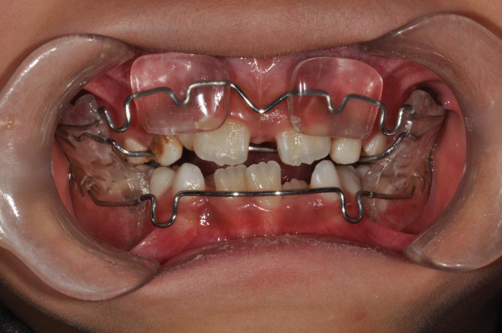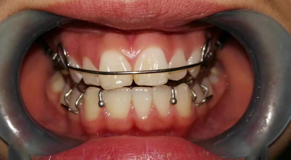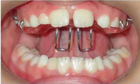 2. 早期阻断性矫治:对已出现的早期畸形及造成畸形的因素,以及不良习惯等进行矫治器阻断治疗及肌功能调整训练治疗。