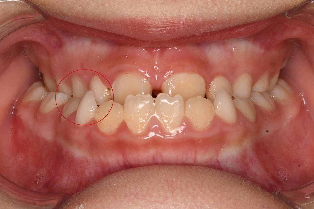 后牙反合表现为下后牙咬在上颌后牙的外侧、上牙弓狭窄。单侧后牙反合患者会出现不同程度的颜面不对称,当上牙弓进一步狭窄时,会形成双侧后牙反合,影响其咀嚼。