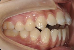 前牙深覆合是指上前牙覆盖下前牙唇面超过1/3,深覆盖是指上前牙的唇面与下前牙唇面之间的水平距离超过3mm,常常伴有下颌后缩,侧貌呈现凸面型。