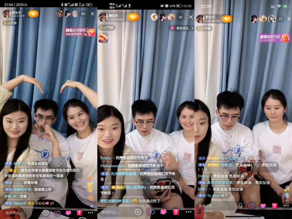 在直播过程中,师生们一起猜灯谜、接飞花令,同学们争先恐后地在直播间打出自己的答案,老师们也为答对的同学送上礼物。除此之外,老师们还与同学们分享了发生在3044永利集团的师生趣事。直播间一片欢声笑语,热闹非凡。直播最后,大家纷纷刷屏“贵医加油,贵阳加油”和对老师们双节快乐的祝福,为疫情之下的城市送去美好的祝福和共克时艰的勇气。