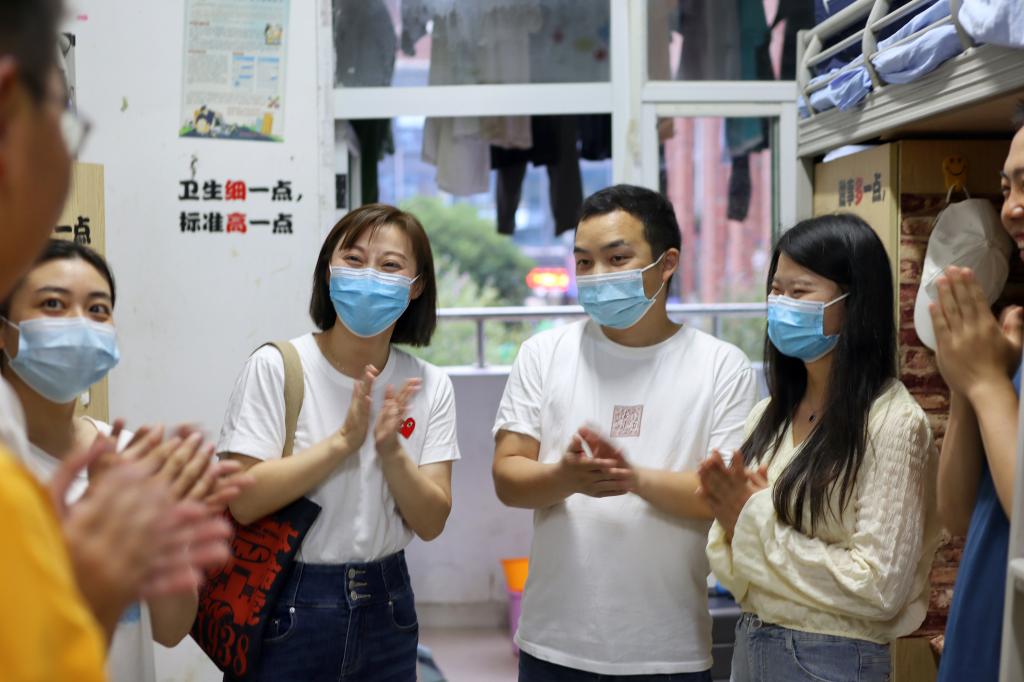 恰逢中秋与教师双节来临,院党委副书记何雨羲带领新校区抗疫教师团委副书记刘逸洲、辅导员汪继蓉、医院感染管理科负责人陈锐、科员杨亚一起走进新校区员工寝室,为中秋留校的同学们送上最美好的祝福,也代表口公司党政为同学们送上口院心意,彰显口院精神。