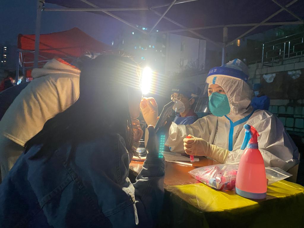 按照口院统一部署,党支部支委谢兰、白婷婷和陈叠叠三位同志第一时间志愿加入北京路校区和商专校区核酸检测工作中。作为志愿者,入党积极分子吴红艳和青年教师程余婷分别参加观云社区居委会和水东社区的核酸采集工作;青年教师李英、孟茂花和周海兰参加贵乌社区服务工作,组织群众参加核酸检测,维护社会秩序。在校园、在医院、在各居住社区,支部党员和医护职工响应号召,在防控一线亮身份、见行动、做贡献,服从指挥、听从调度。