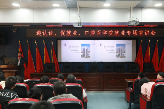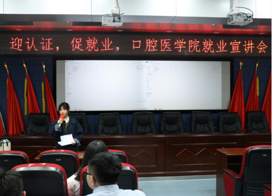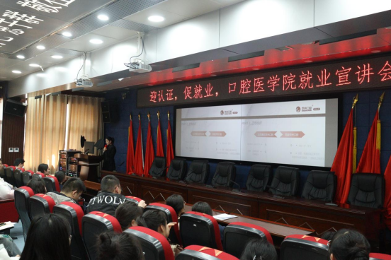 为进一步推动就业工作,拓宽毕业生就业渠道,帮助员工全面了解当前就业形势与政策,同时也为招聘单位与员工搭建沟通平台,3月9日,3044永利集团邀请常熟玉蕙口腔医院有限公司、海南口腔医院有限公司、京州口腔医疗有限责任公司、广州德仁口腔医疗有限公司在行政楼五楼学术报告厅举办“迎认证,促就业,3044永利集团就业宣讲会”,宣讲会由毕业班辅导员赵会主持。