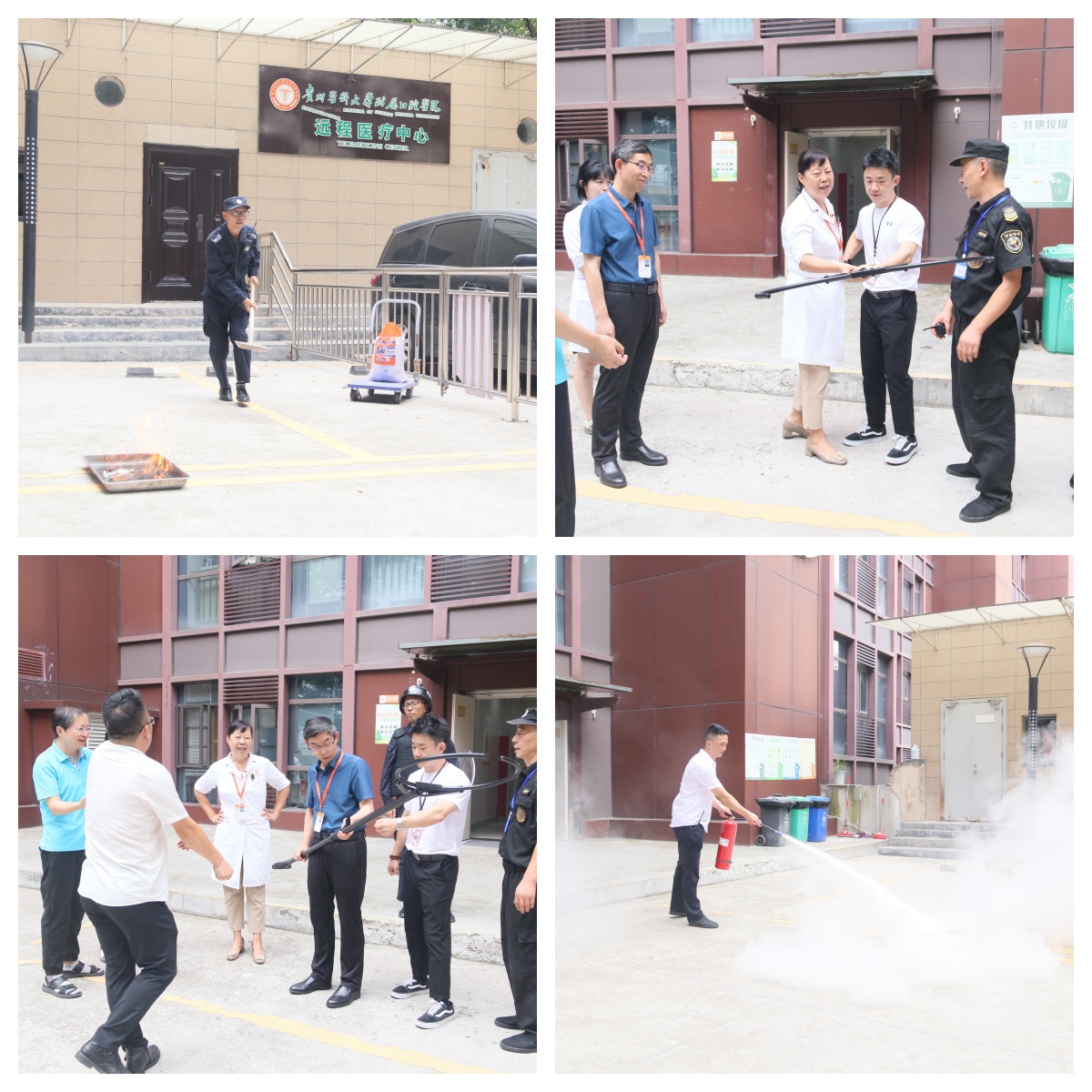 公司党委书记张军梅出席活动;党委委员、副经理唐正龙担任总指挥长,负责消防、防控演练的组织与指挥;设备后勤管理科、全院安全联络员和绿地物业安保人员参加演练,贵阳市公安局云岩分局大营路派出所警官参加并指导此次演练。